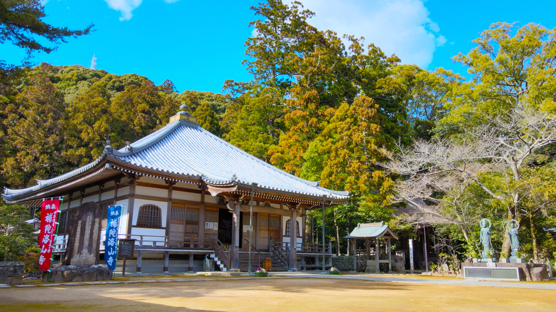 山々に突如現れる卍の正体は!?那智の滝と並んで目を引く巨大な卍は、紀州南端に位置する妙法山という海抜749mのお山にある真言宗のお寺熊野妙法山 阿彌陀寺のシンボル。黄泉の国への入口として、古来より信仰を集めています。
